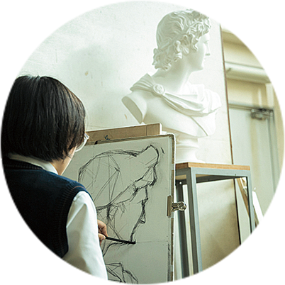美大の実技入試対策として、希望者にデッサン補習を行っています。専門教員陣による志望校に合わせた丁寧な指導で確実にデッサン力を伸ばします。