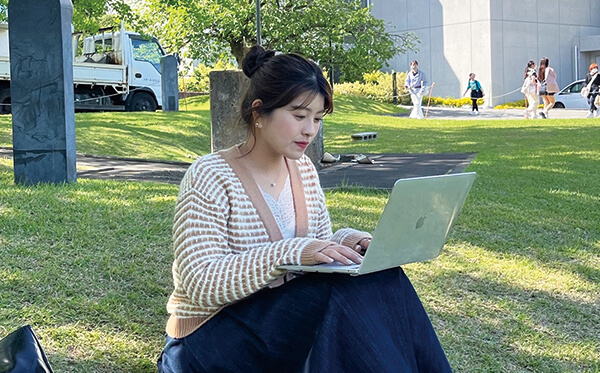 教職や留学のための勉強、バイト、サークルなど充実した大学生活を送っています。高校で学んだのは何事も諦めないこと。部活動では何回も怪我をしましたが、顧問の先生のサポートもあり、九州大会で入賞することができました。勉強をするときは必ず目標を立てて! 部活動にも学校行事にも思いっきり取り組んで楽しい学校生活にしてください。