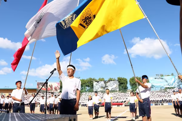 應援團部は「リーダー部」と「ブラスバンド部」2部体制で、応援活動しています。